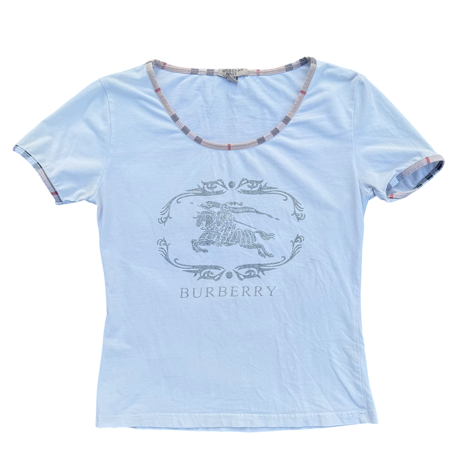 White sparkle logo Burberry womens ringer tee